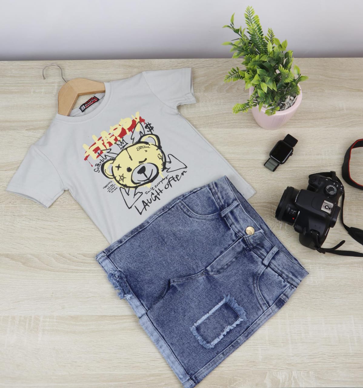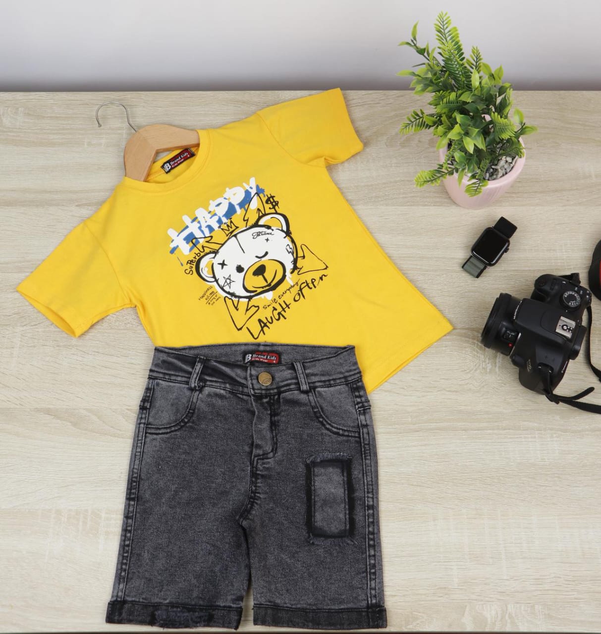 طقم اولادي HAPPY شورت جينز وتيشيرت قطن سينجل ليكرا امن علي بشره الاطفال متوفر بالوان اسود منت جرين-مسطره -رمادي متوفر بمقاسات 2-3-4-5 تيشيرت 2-طول 40*عرض 30 3-طول 42*عرض32 4-طول44*عرض 34 5-طول 46*عرض 36 شورت 2-طول28*عرض24 3-طول30*عرض26 4-طول32*عرض28 5-طول34*عرض30